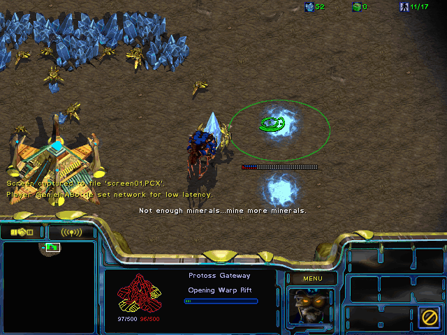 накопите 260-270 минералов. Потом быстро заложите 2 гейта в ОДНО